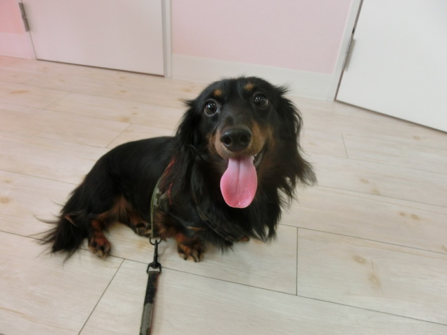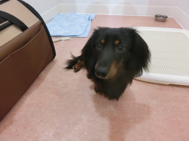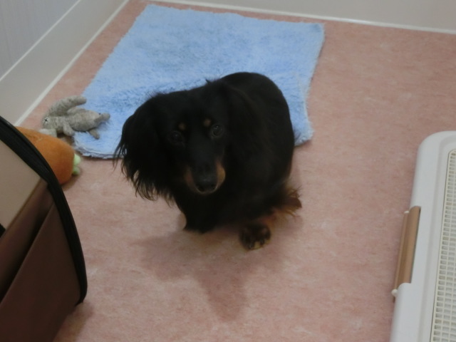 お泊まりしてる M・ダックスの ラッキー君 emoji